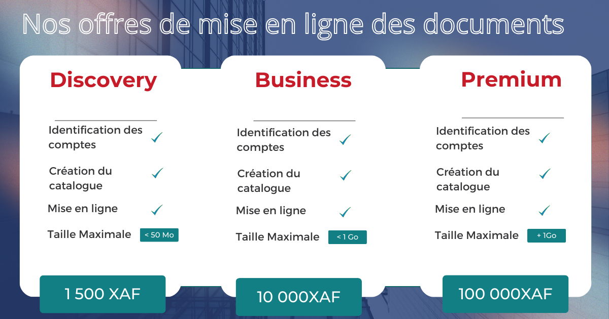 C’est également le lieu où le coût au téléchargement de votre document est définit. Pour un suivit complet et personnalisé sur cette phase, vous avez trois offres dont les coûts varient suivant la taille totale de vos documents.